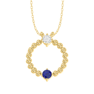 LADIES PENDANT WITH CHAIN 0.15CT ROUND/BLUE SAPPHIRE DIAMOND 14K YELLOW GOLD (CENTER STONE ROUND BLUE SAPPHIRE-0.10CT)