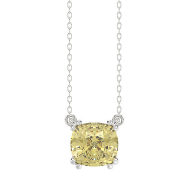 14K WHITE GOLD 1.00CT CUSHION YELLOW DIAMOND LADIES PENDANT