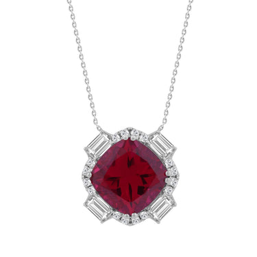14K WHITE GOLD 1.00CT ROUND/EMERALD/RUBY CUSHION DIAMOND LADIES PENDANT WITH CHAIN