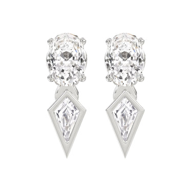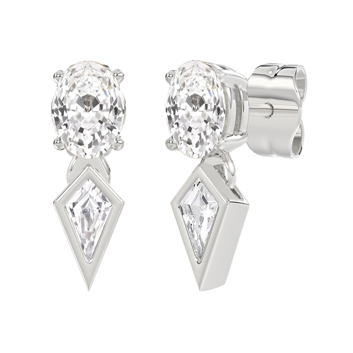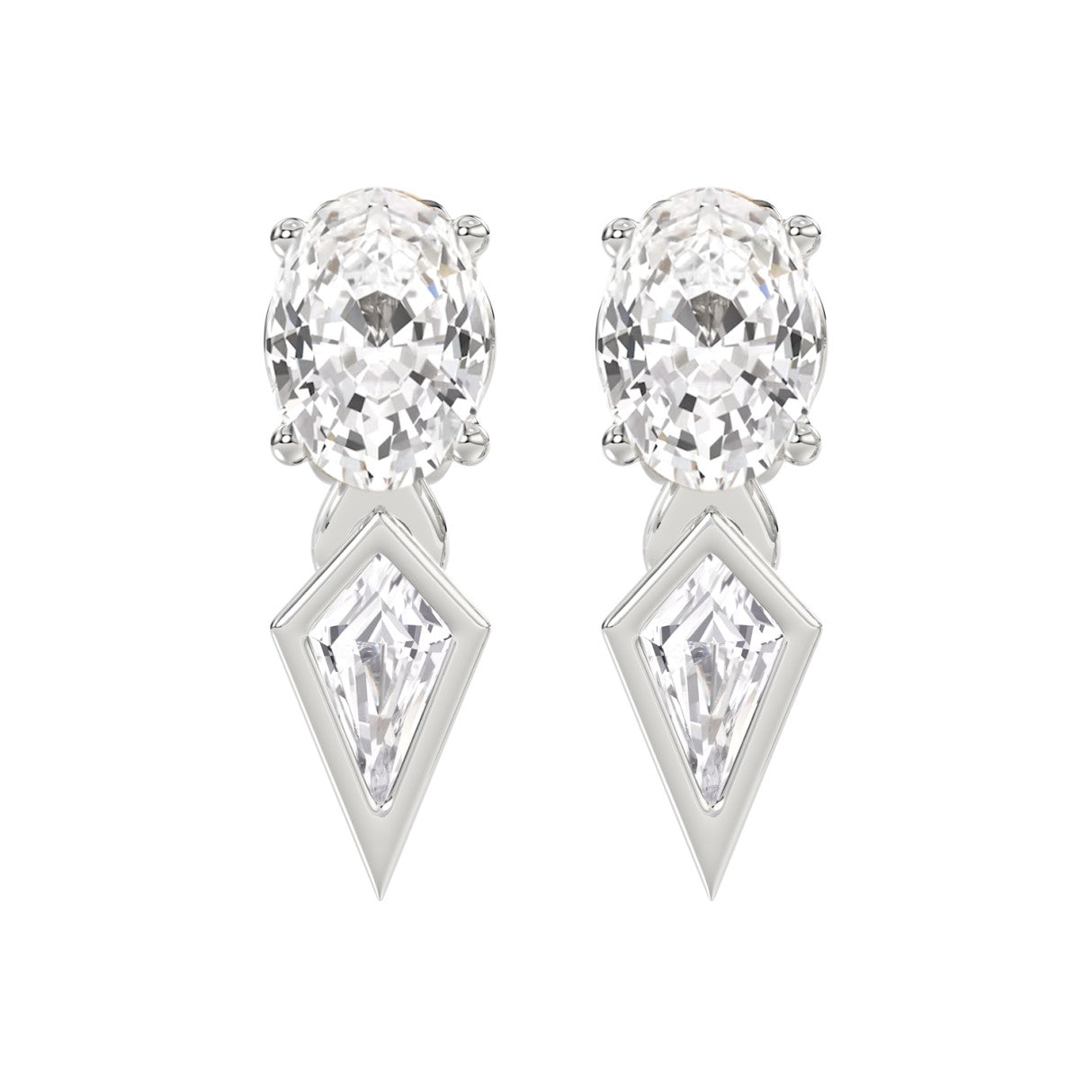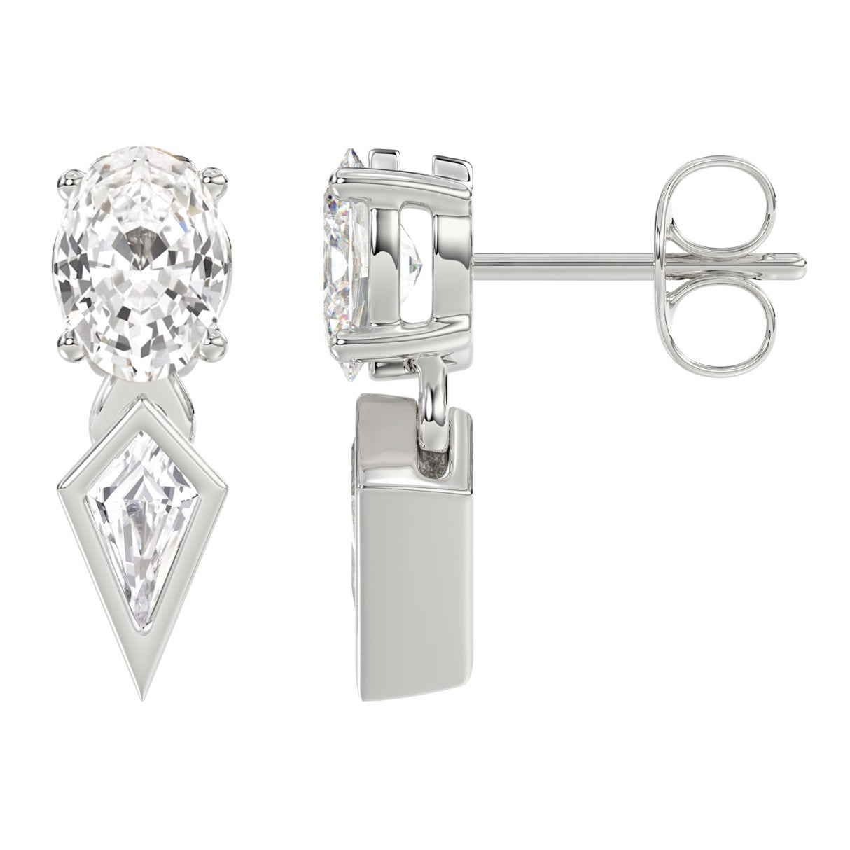 14K WHITE GOLD 1.00CT ROUND/KITE STEP CUT DIAMOND LADIES EARRINGS