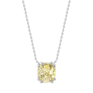 14K WHITE GOLD 1.00CT YELLOW CUSHION DIAMOND LADIES PENDANT