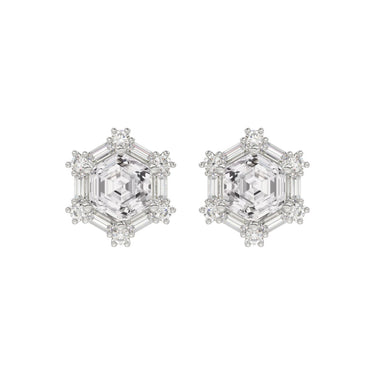 14K WHITE GOLD 1 1/4CT ROUND/BAGUETTE/HEZAGON STEP CUT DIAMOND LADIES EARRINGS