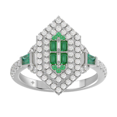 14K WHITE GOLD 1 1/6CT ROUND/BAGUETTE/EMERALD DIAMOND LADIES RING (GREEN EMERALD BAGUETTE DIAMOND 1/6CT)