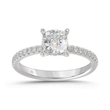 14K WHITE GOLD 1 3/4CT ROUND/CUSHION DIAMOND LADIES RING (CENTER STONE CUSHION DIAMOND 1 1/2CT)