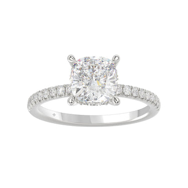 14K WHITE GOLD 2 1/4CT ROUND/CUSHION DIAMOND LADIES RING (CENTER STONE CUSHION DIAMOND 2CT)