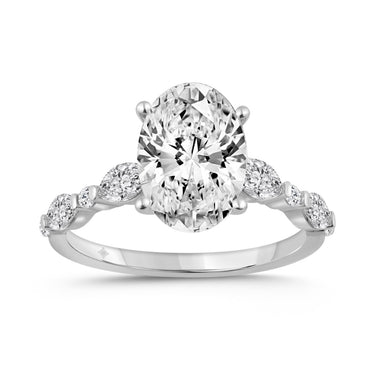 14K WHITE GOLD 4.00CT ROUND/OVAL/MARQUISE DIAMOND LADIES RING (CENTER STONE OVAL DIAMOND 3 1/2CT)