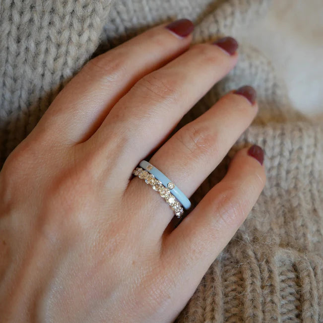 EF-Collection 3 Diamond & Baby Blue Enamel Stack Ring