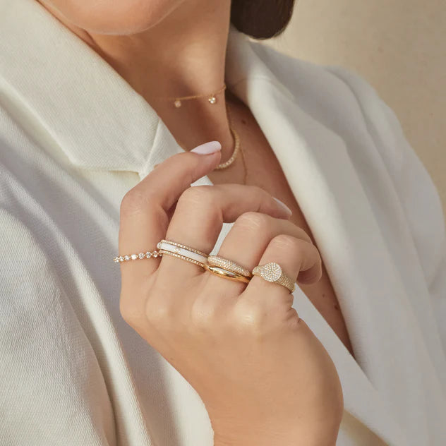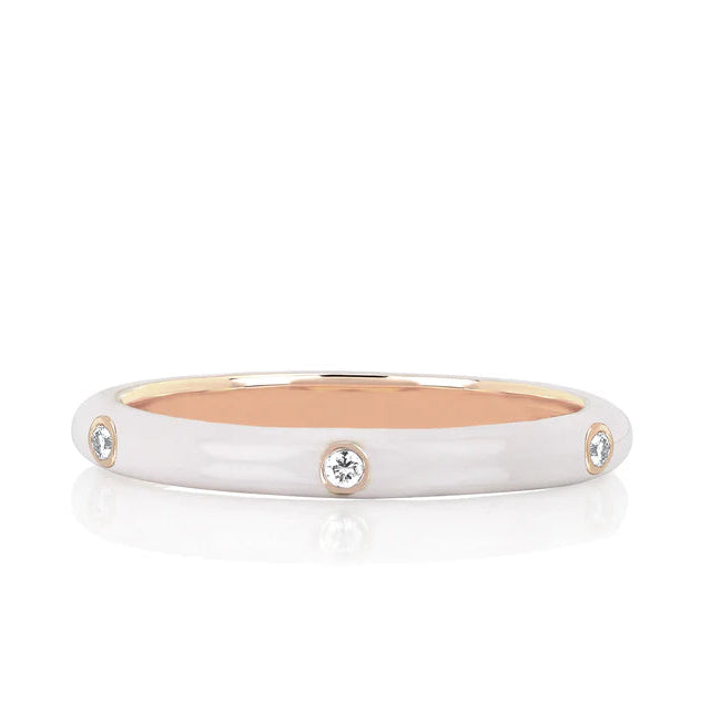 EF-Collection 3 Diamond & White Enamel Stack Ring