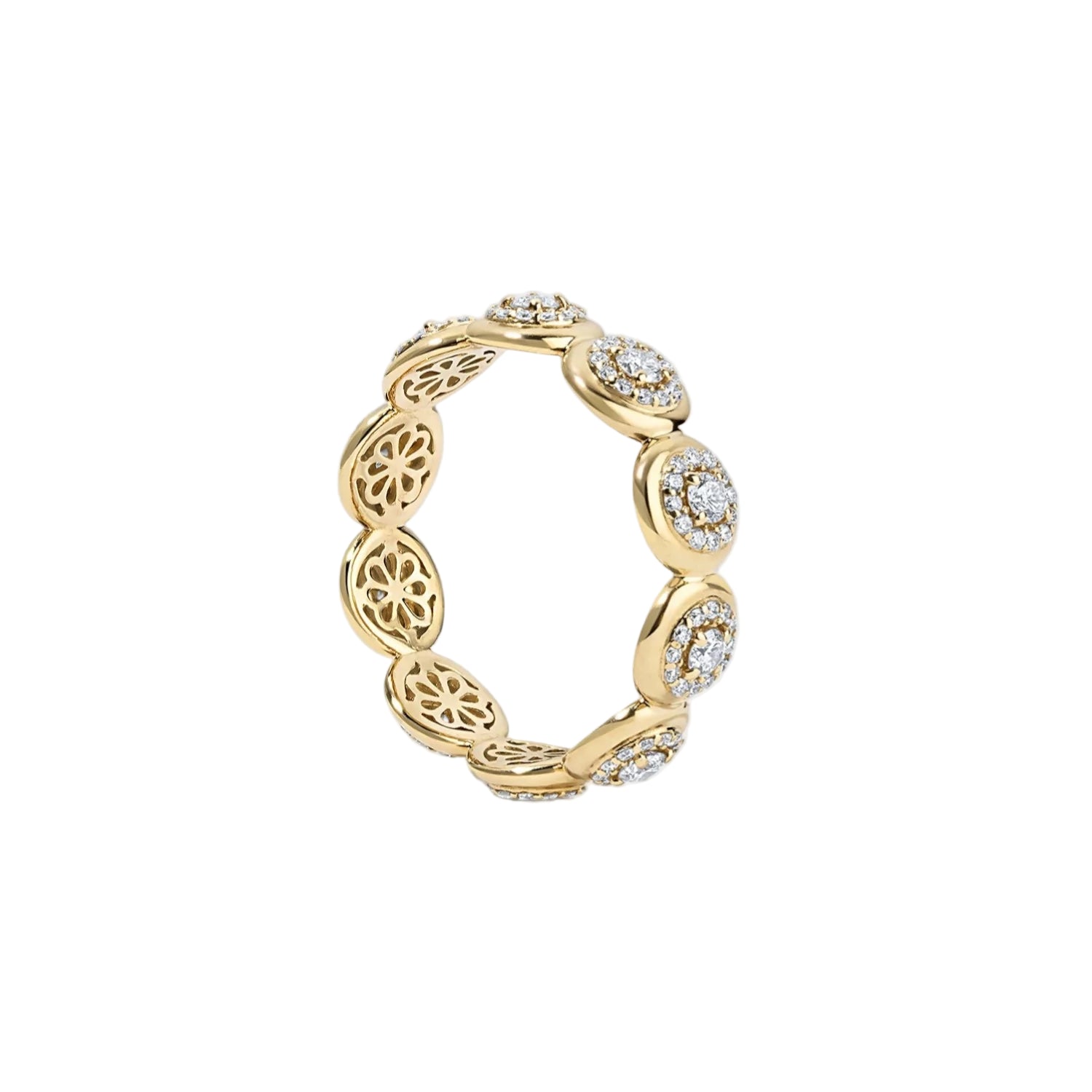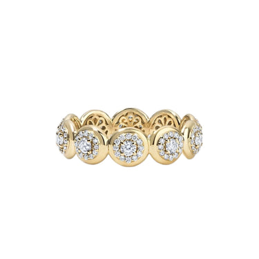 A timeless celebration of heritage and modern luxury, the Anna Button Eternity Band embodies the essence of the Anna Collection: elegance reimagined. Crafted in solid 14k gold and set with .89 carats of round lab-grown diamonds, this ring features a continuous circle of delicately framed diamond clusters—each bezel-inspired design echoing the refined beauty of vintage buttons.
