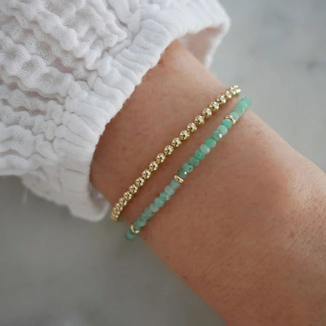 Add a special touch to your look. Our Birthstone Bead Collection styles are crafted with natural stones and three 14k gold rondelles strung on a coated wire for maximum durability. Wear your own birthstone—or a loved one’s—for a meaningful layer in any bracelet stack. Emerald is May's birthstone.