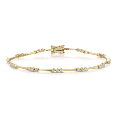 A fresh take on the classic eternity bracelet, this design features crown-set diamonds framed by tapered bars. Diamonds accent the secure box clasp, completing the piece for a seamless eternity look.