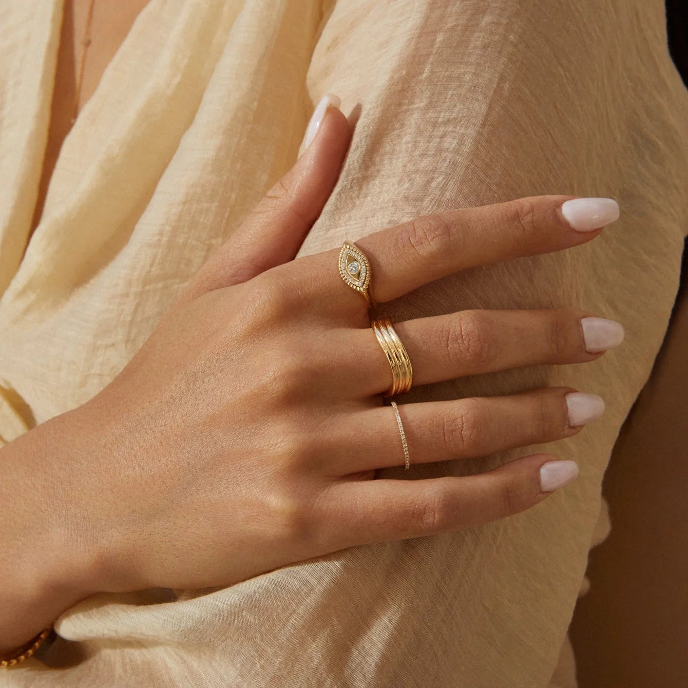 The Diamond Eternity Band Ring shines with .17 carats of diamond set around a 14k gold band. Chic stacked or solo, this ring is one you'll cherish for eternity.