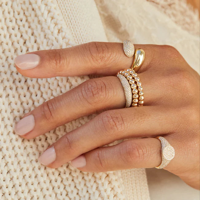 The Diamond & Gold Jumbo Double Dome Ring combines the best of EFC's Gold Dome and Diamond Dome rings. Featuring one 14k gold side and the other glistening in pavé diamonds, this ring is a true showstopper.