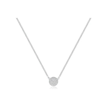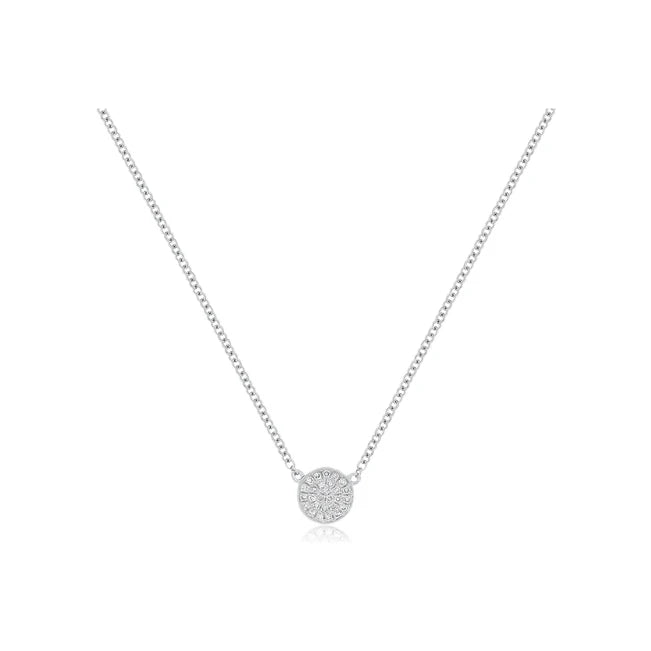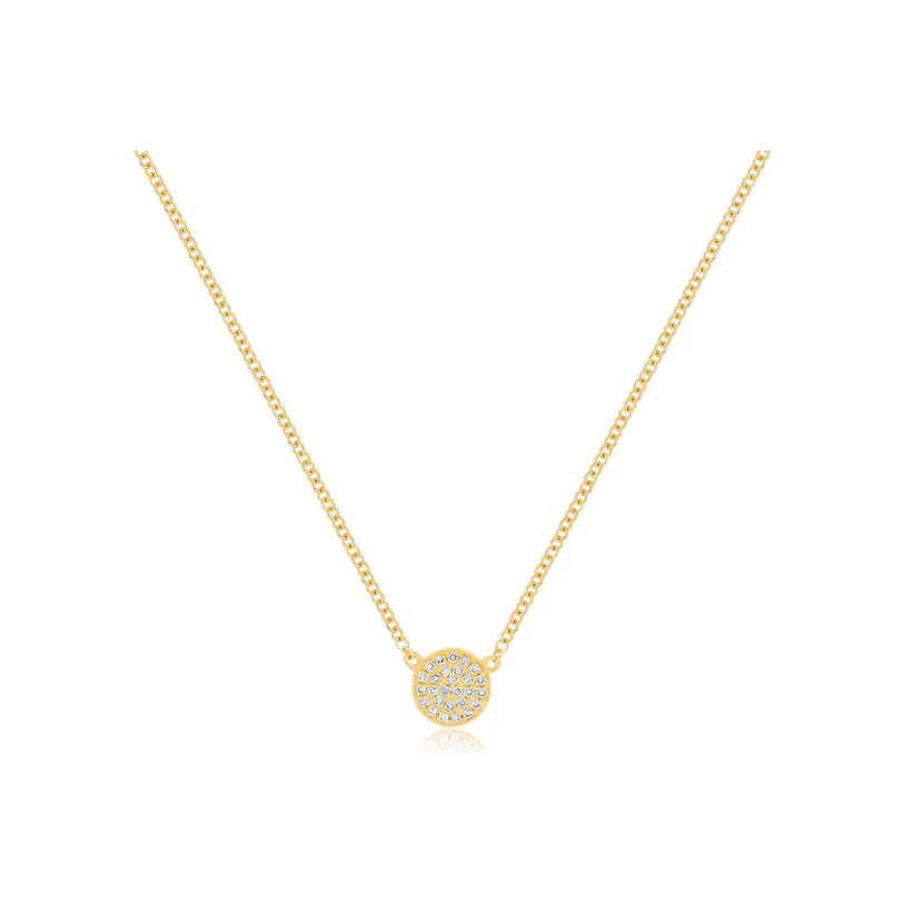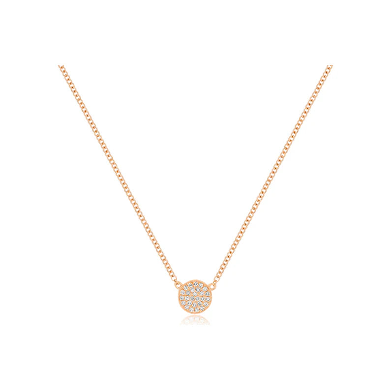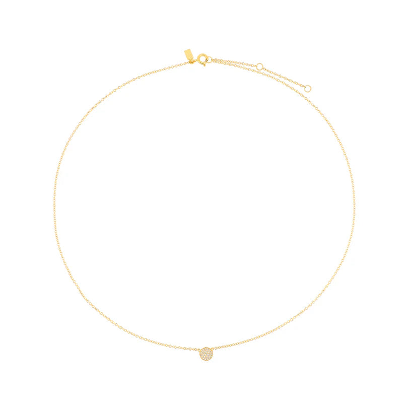 The Diamond Mini Disc Necklace is the little sister to the Diamond Disc Necklace with a disc diameter of 6 mm. Featuring .07 carats of pavé diamond, this dainty pendant necklace looks chic solo or layered.