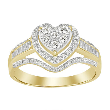 LADIES FASHION RING 0.50CT ROUND/BAGUETTE DIAMOND 10K YELLOW GOLD