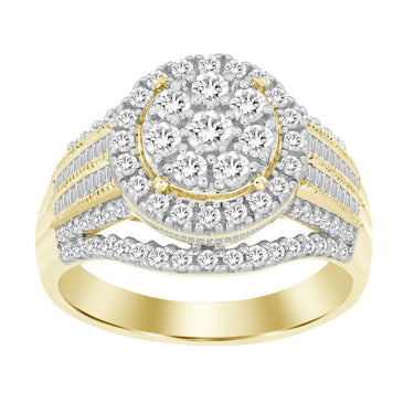 LADIES FASHION RING 1.00CT ROUND/BAGUETTE DIAMOND 10K YELLOW GOLD