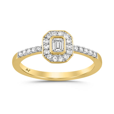 LADIES RING 0.33CT ROUND/EMERALD DIAMOND 14K YELLOW GOLD