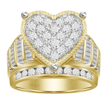 LADIES RING 2.00CT ROUND/BAGUETTE DIAMOND 10K YELLOW GOLD
