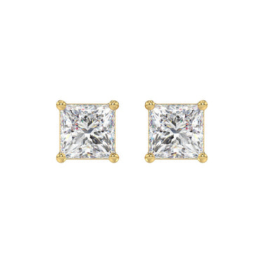 LADIES SOLITAIRE EARRINGS 4CT PRINCESS DIAMOND 14K YELLOW GOLD
