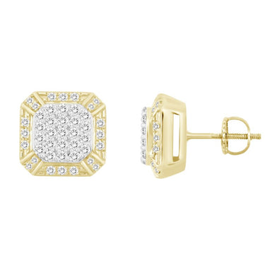 LADIES STUD EARRINGS 1.00CT ROUND DIAMOND 10K YELLOW GOLD