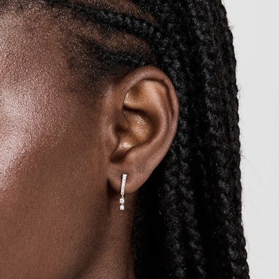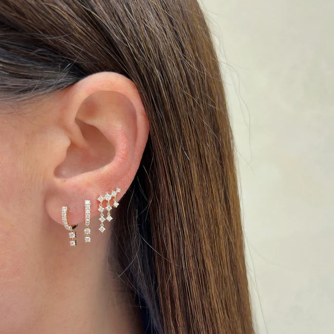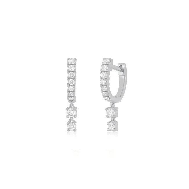 EF-Collection Prong Set Diamond Double Drop Mini Huggie Earring
